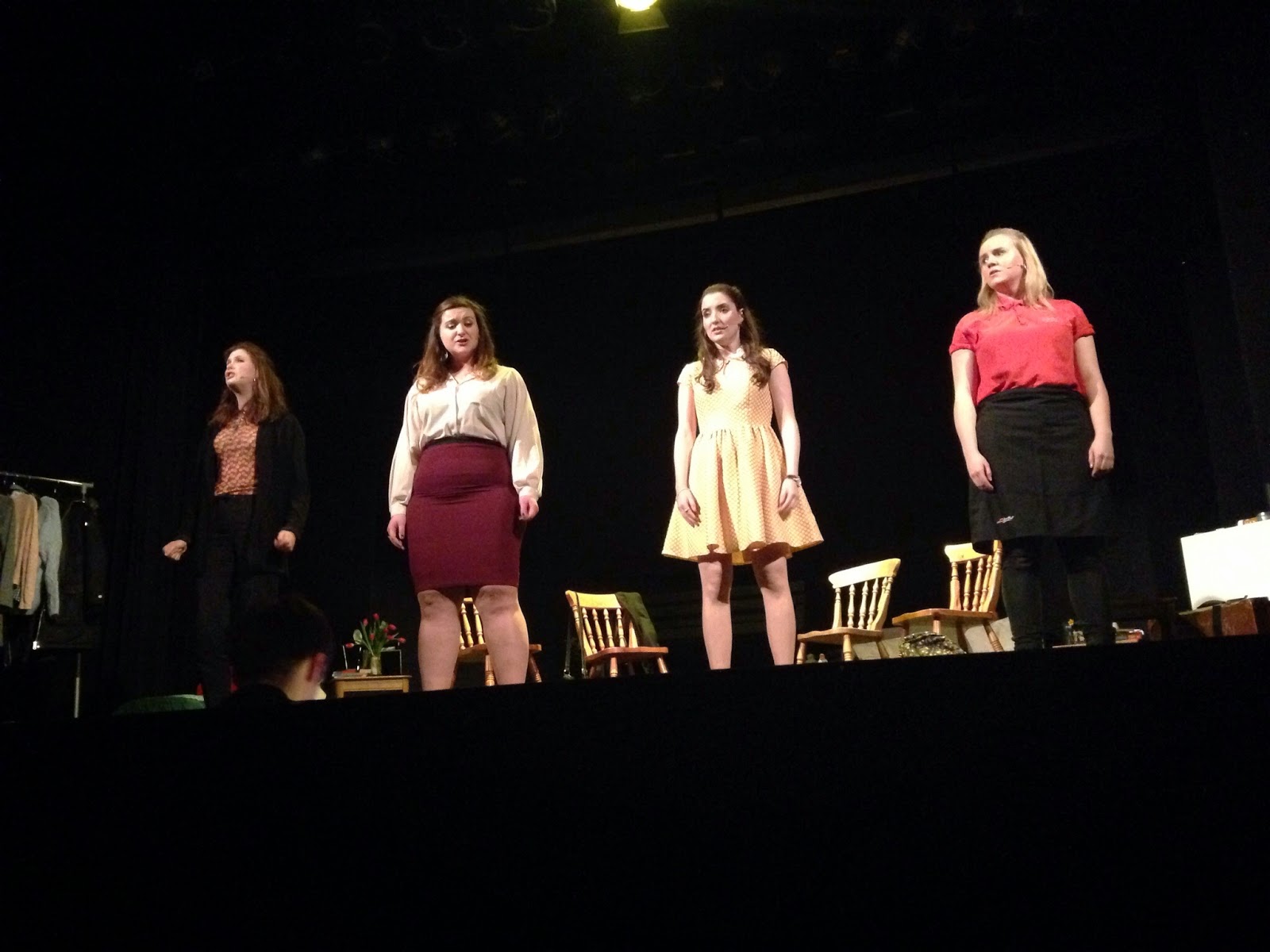 The show kicks off with Becky (Ashleigh Jones) confessing her insecurities to 'The Woman's Support Socialisation and Friendship Group of New York': "Stock shelves and daydream of a scheme to rob the store." This song, titled 'Become' introduces each of the characters in this confessional manner. Hayley (Emily Keston) is a 20-year-old devout Christian on the pursuit of love. Caitlin (Bethan Ratcliffe), who is Hayley's older sister, has suffered a series of messy relationships but is settling down with Joanna (Katie Laurence), a 25-year-old law graduate.